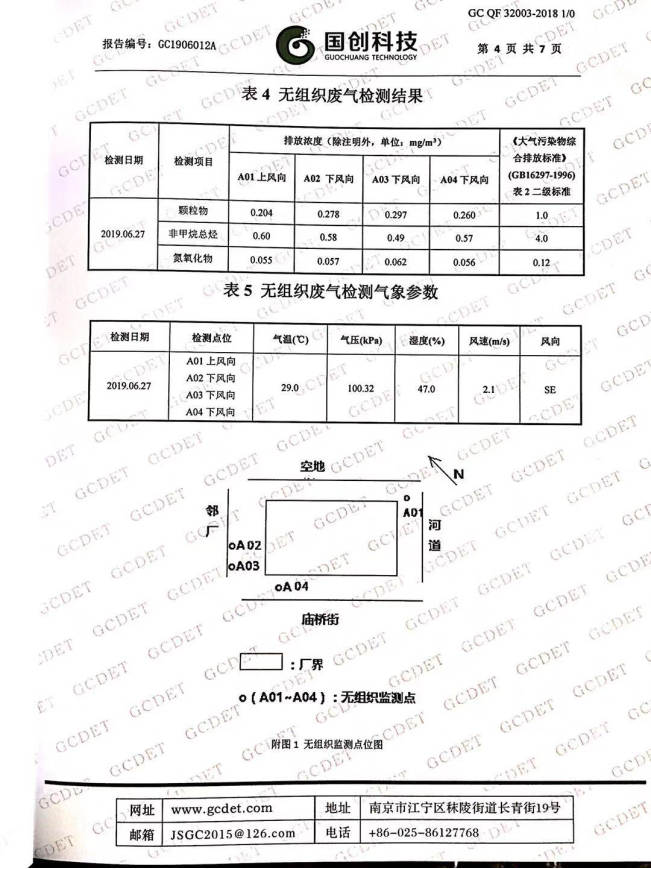 2019年上半年廢水、廢氣、噪聲檢測(cè)報(bào)告