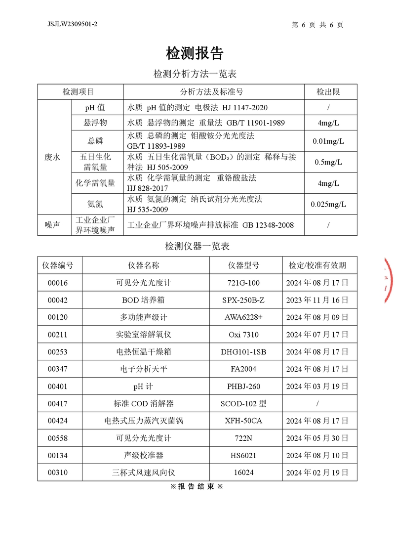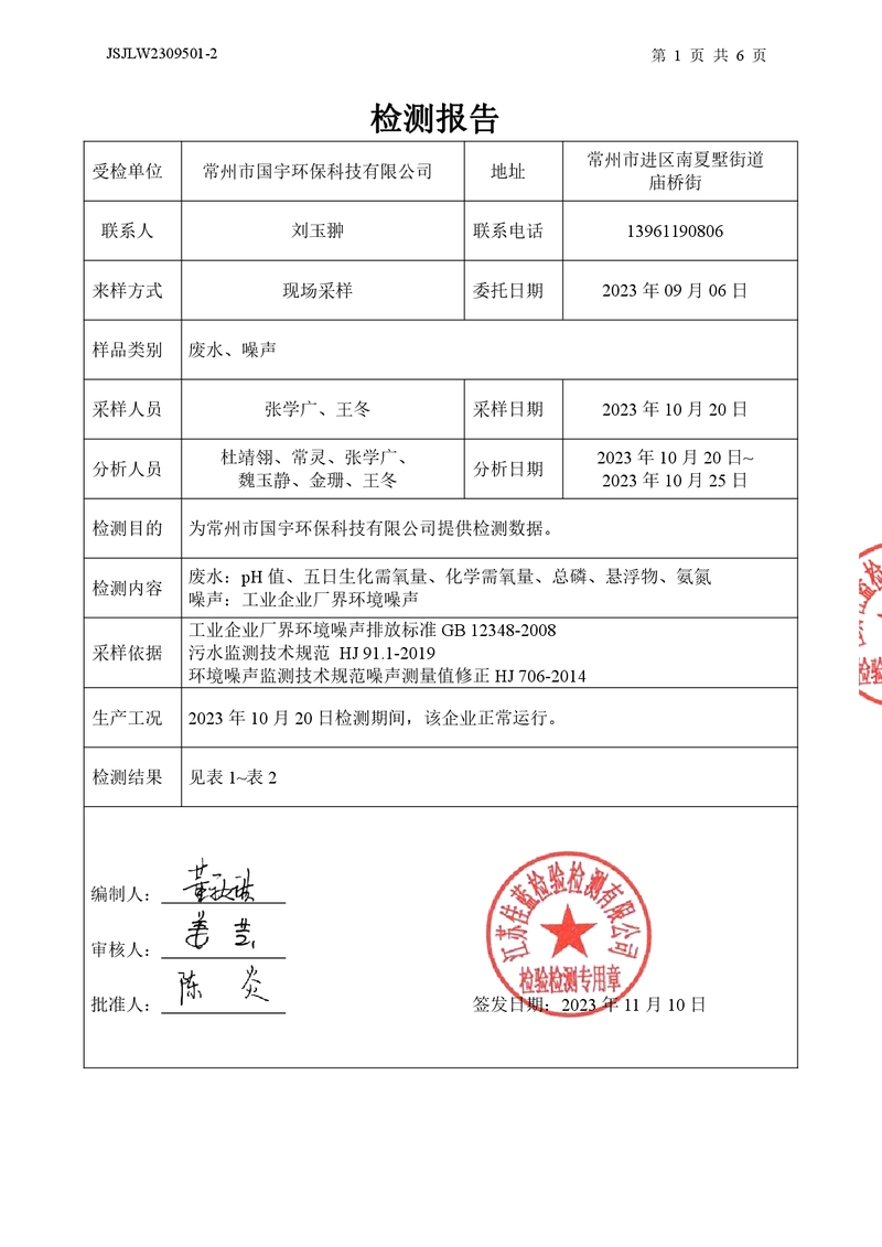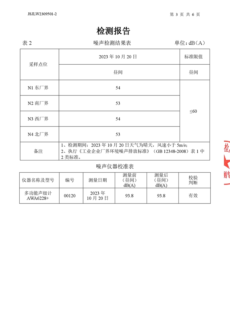 廢水、噪聲檢測(cè)報(bào)告